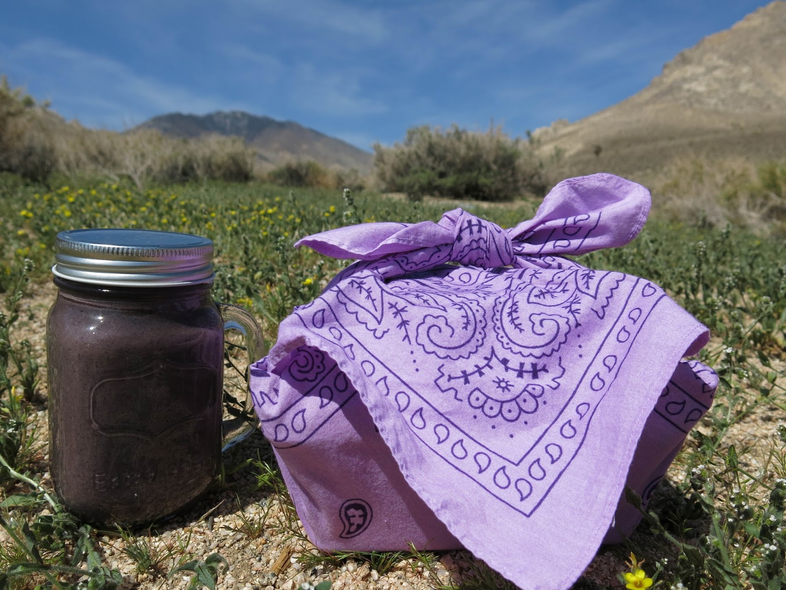 After a lazy start to my midweek morning, I gathered together some odds and ends from the fridge and packed myself a little picnic lunch. With some fresh veggies left from last week's produce box and a bit of leftover miso-citrus dressing from the night before, I made a bright and cheery spring salad to go. I wrapped it up along with the last of the homemade hemp hummus, some crackers and a blueberry-acai smoothie from the freezer for dessert.